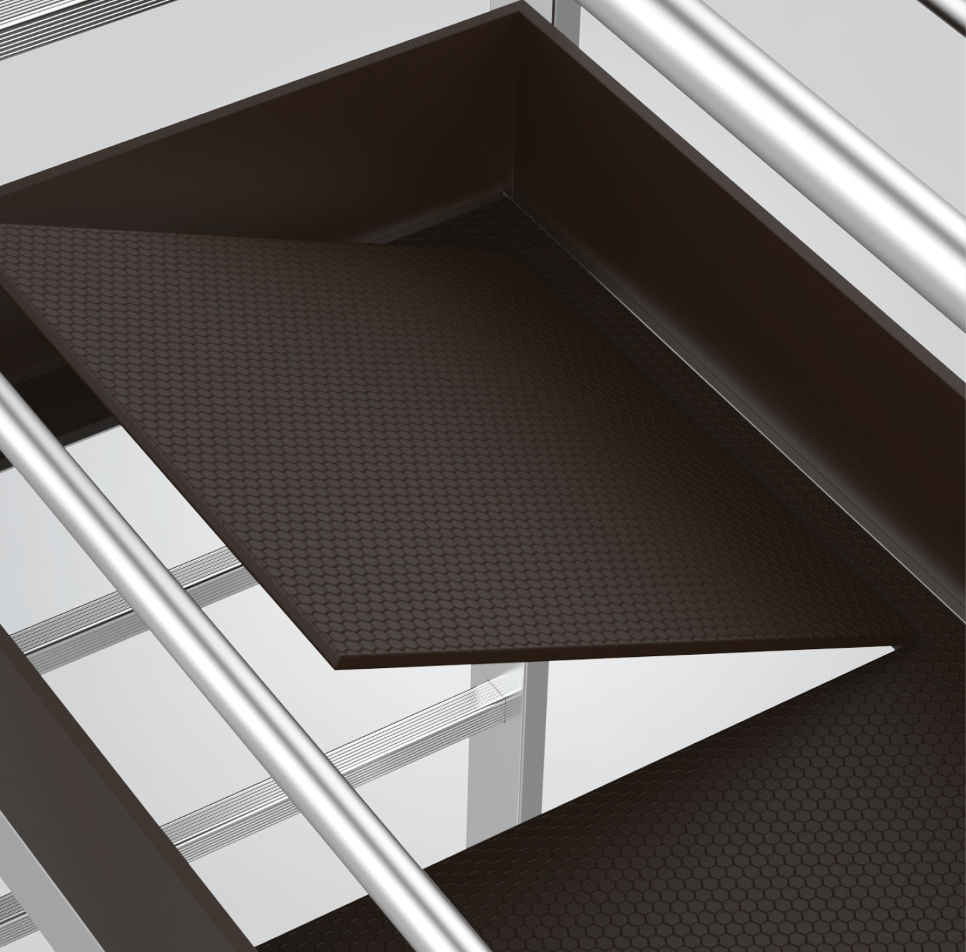- ექსკლუზიური დიზაინის საფეხურები ხელს უშლის მოცურებას.